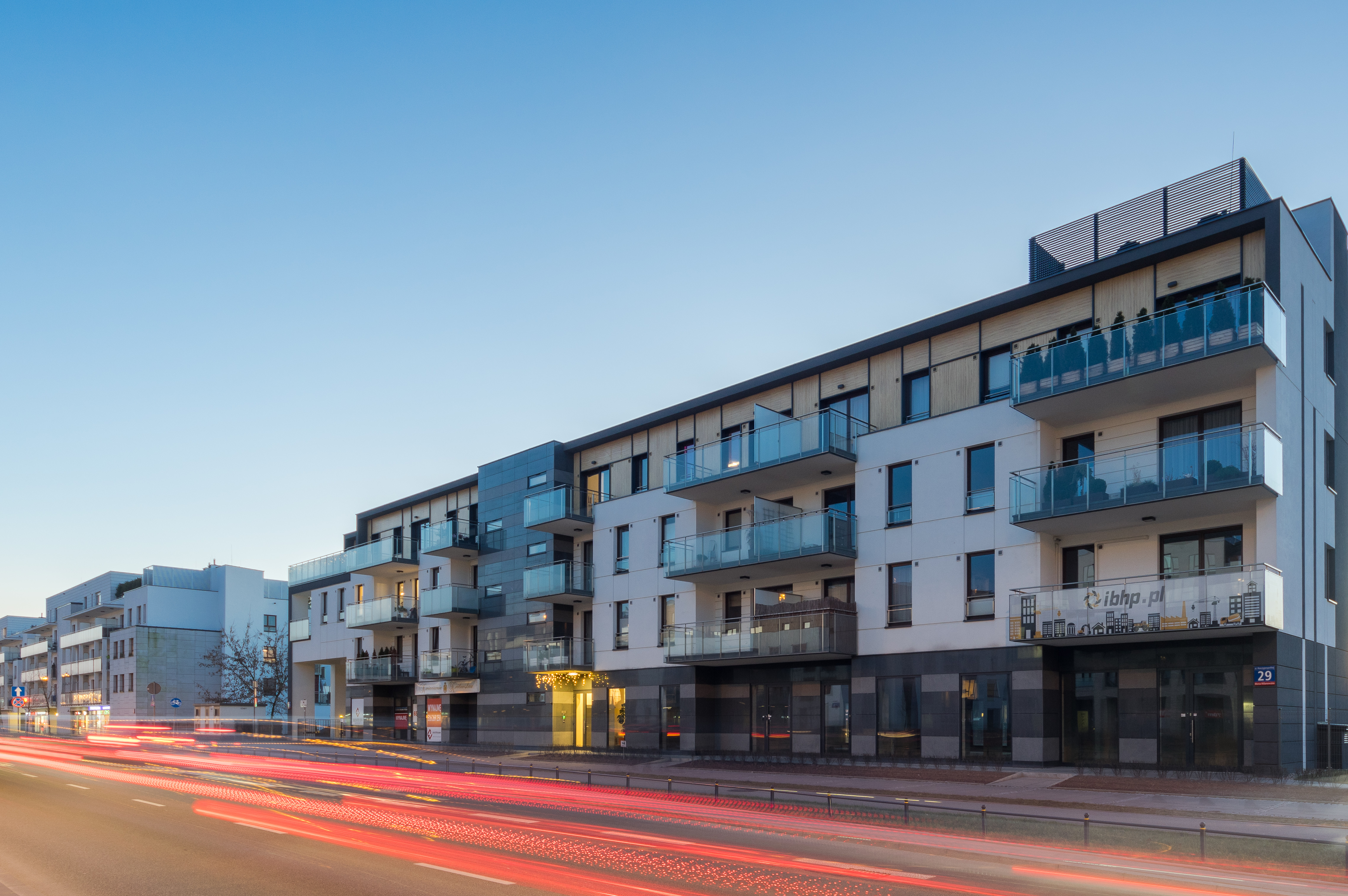 Budynki mieszkalne wielorodzinne 4 kondygnacyjne z usługami w parterze oraz parkingiem podziemnym o łącznej powierzchni użytkowej mieszkań 5,048 tysiąca i 171 miejscami postojowymi.