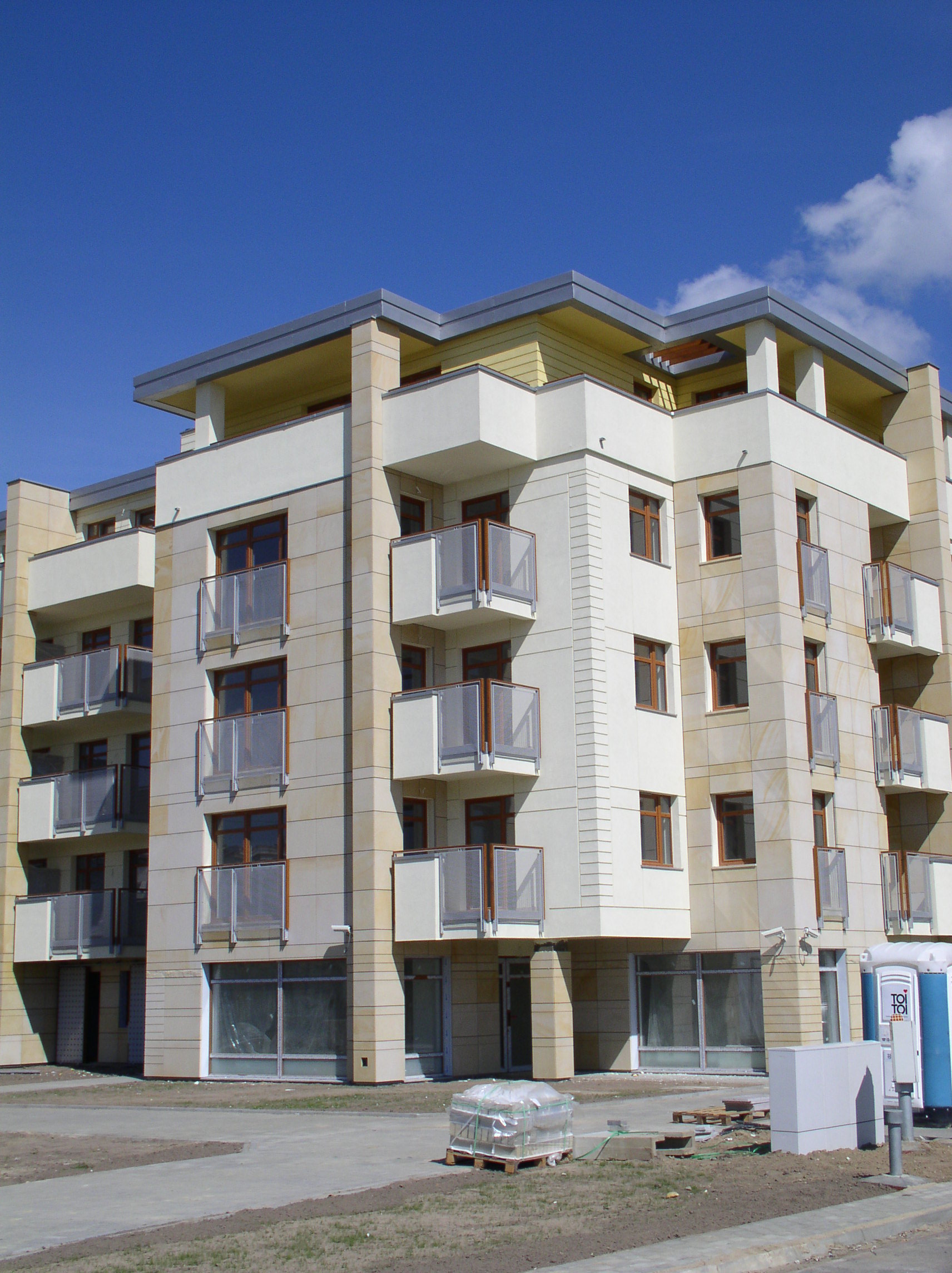 Zespół zabudowy mieszkaniowej wielorodzinnej z usługami w parterach, 5 kondygnacyjnej o łącznej powierzchni użytkowej ponad 50,000 m2. Parkingi podziemne na łączną liczbę ok. 700 miejsc postojowych.