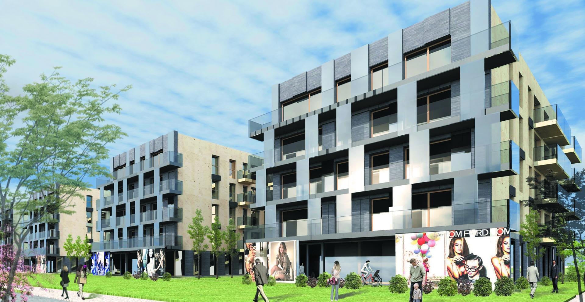 Zespół zabudowy mieszkaniowej wielorodzinnej z usługami w parterach, 5 kondygnacyjnej o łącznej powierzchni użytkowej mieszkalnej ponad 9300 m2. Parkingi podziemne i w części parteru na łączną liczbę ok. 214 miejsc postojowych.