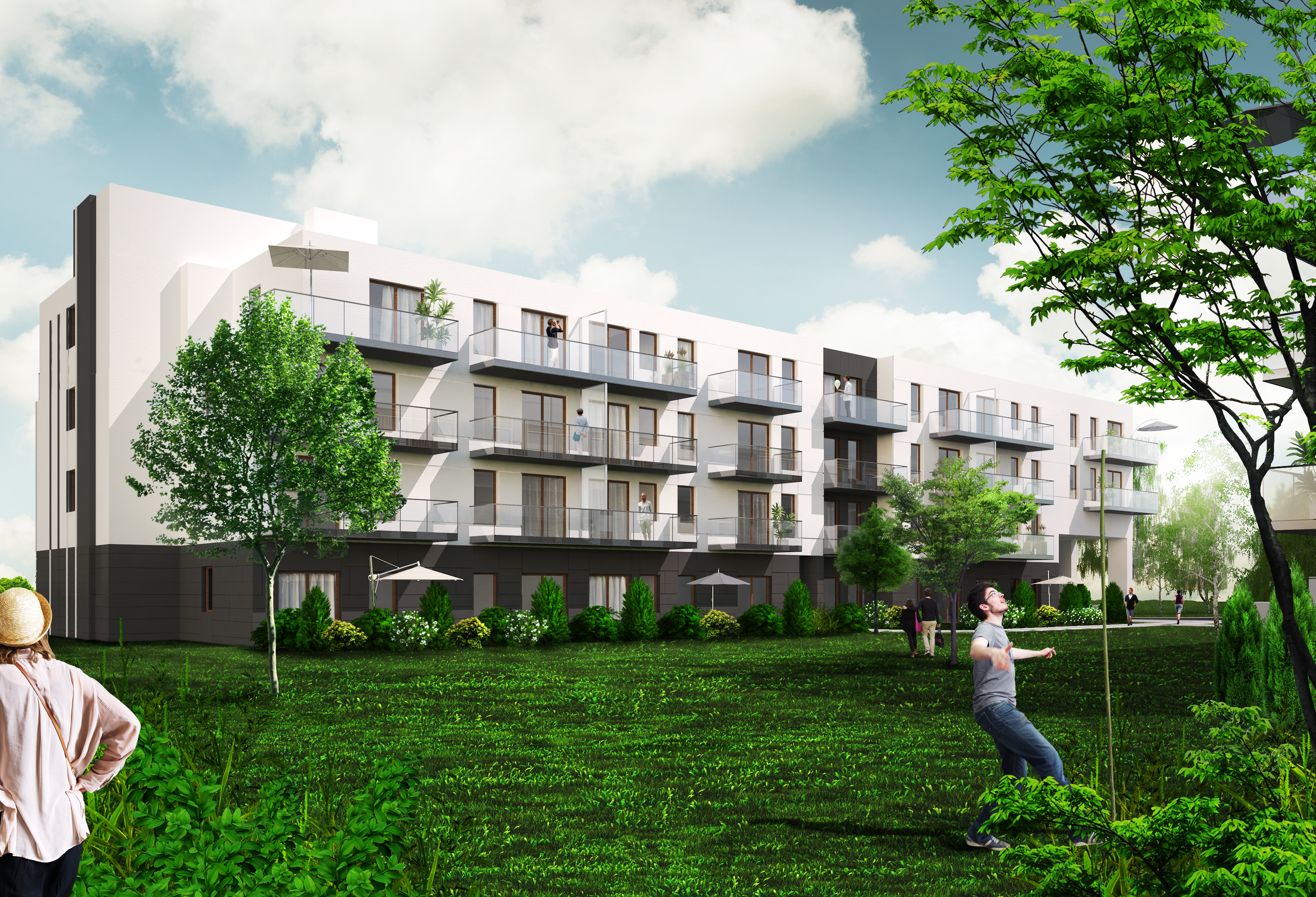 Multi- family housing building with commercial space on the ground floor and underground parking space consisted over 164 parking places. The 4-storey bulding has a total „PUM” area over 4,861 m2.